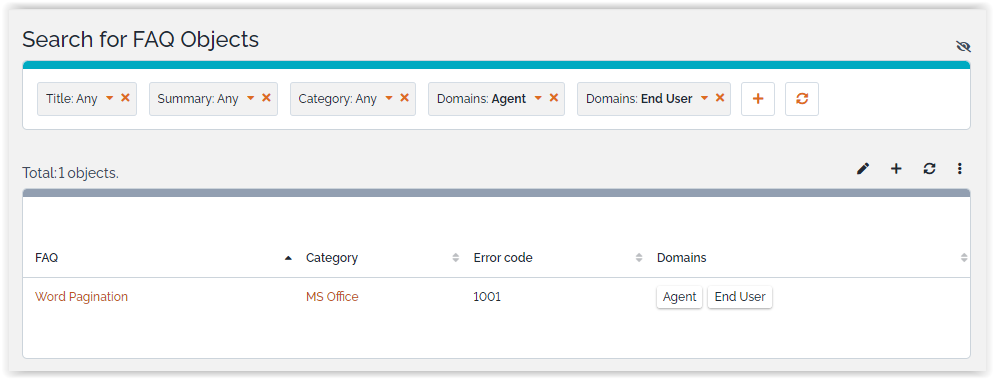 SELECT FAQ WHERE domains MATCHES 'agent enduser'