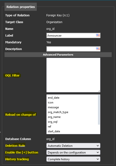 • A star (*) indicated fields which have been added to the standard datamodel, so are specific to your own iTop