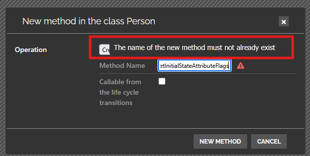 When selecting a particular method, you get a new right panel, which at least will display the type of method and in some case, the sequence order, when those methods are related to the creation and update of the object itself.