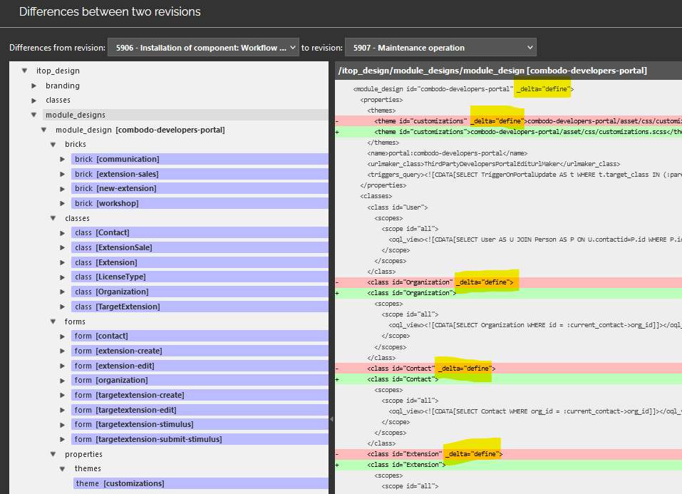 • If you have specified more than one attribute to sort a particular class (through a past request to Combodo which was XML injected), the display will only show the first attribute.