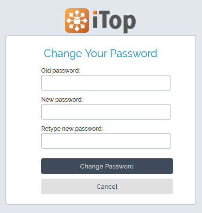 The Change Password menu item is not present when using an external mechanism to authenticate with iTop (such as LDAP, Active Directory, or a Single-Sign-On authentication). In this case you should use your usual method to manage your password.