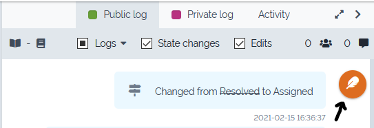 • you directly have the possibility to enter something in the caselog and sent it (Entry form opened by default).