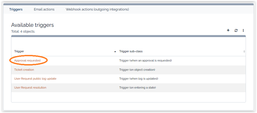 | 2022-03-22 | 2.1.1 | * Remove deprecated calls to ajax_page class * Remove deprecated calls to SetupPage::log_* methods * Improve log entry on approval * Fix approval with silo * Portal: fix Approval screen if the approver is not allowed to see the organization of some user requests |