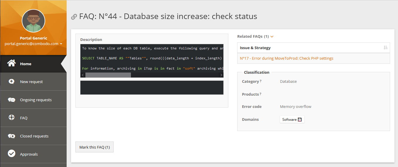 A portal user can note a FAQ to increase its rate