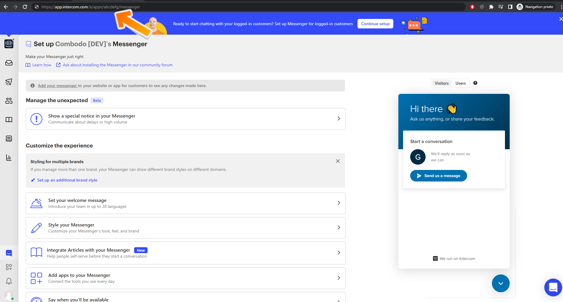 backoffice, on the “Messenger” page, then retrieve in the browser