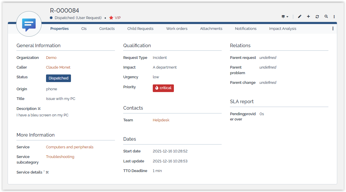 If a caller is a VIP, all his User Requests and Incidents will have the priority set to critical.