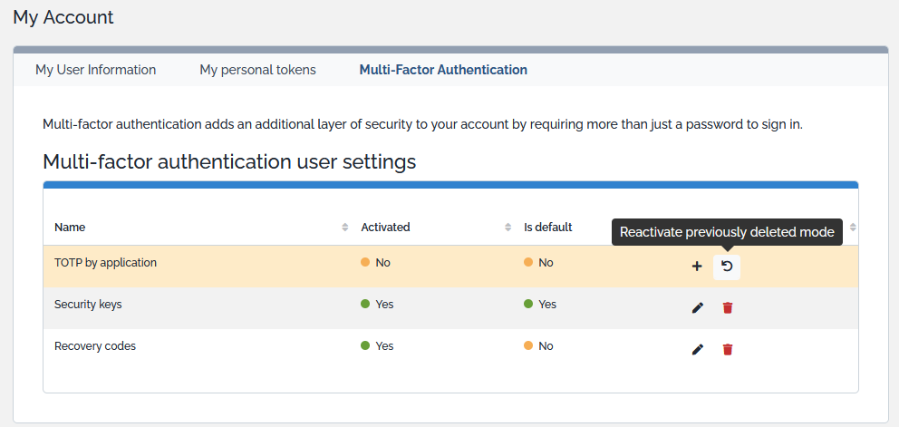 reactivate MFA in the configuration file