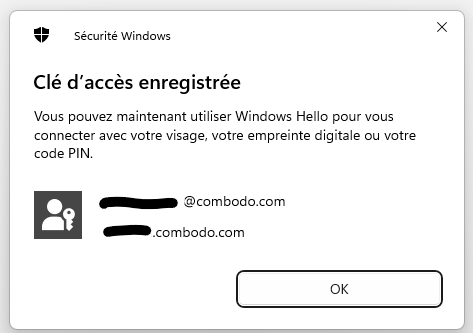 It is not possible to configure multiple security key (physical key and Hello windows for instance)
