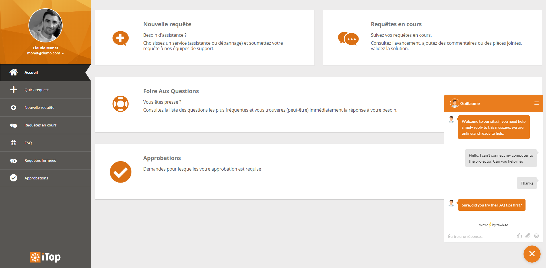 tawk.tointo an iTop Ticket