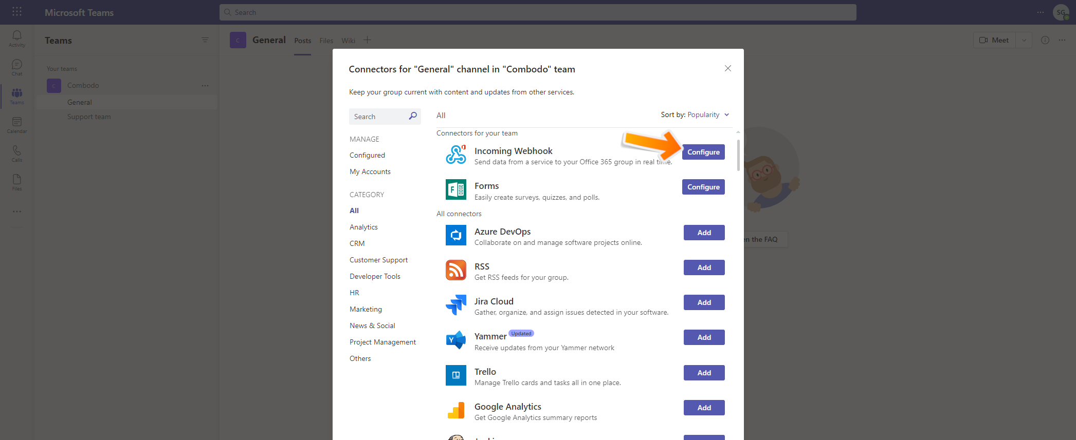 Go the the Webhooks menu, and create a âRemote Connexion using