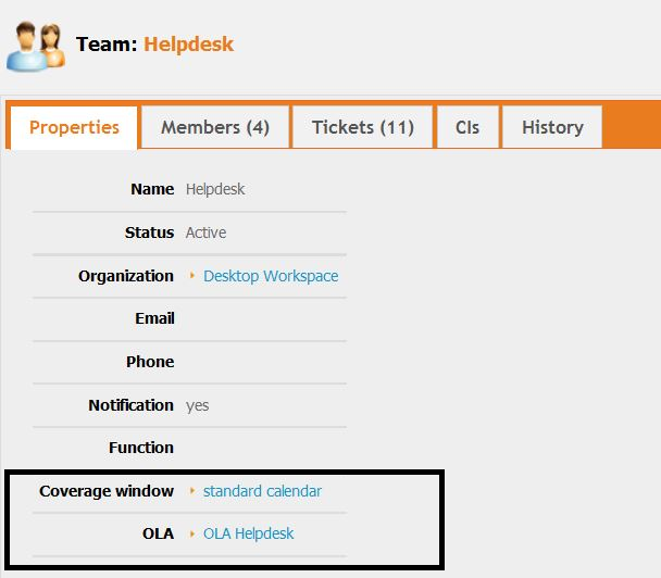 For every team, you will need to indicate which OLA will apply with which coverage. If you don't indicate coverage window, the computation of OLA deadlines will be done using a 24h*7 coverage window.