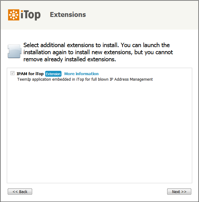 Select the IPAM for iTop extension, when prompted: